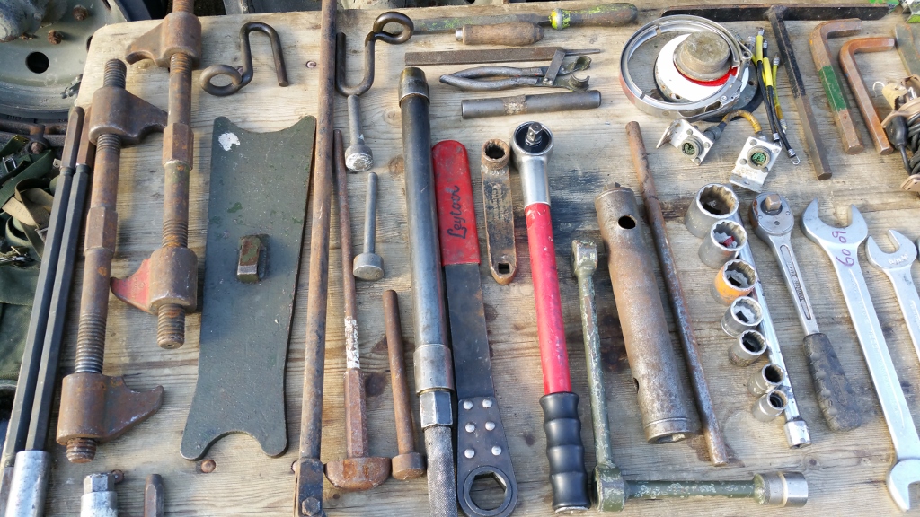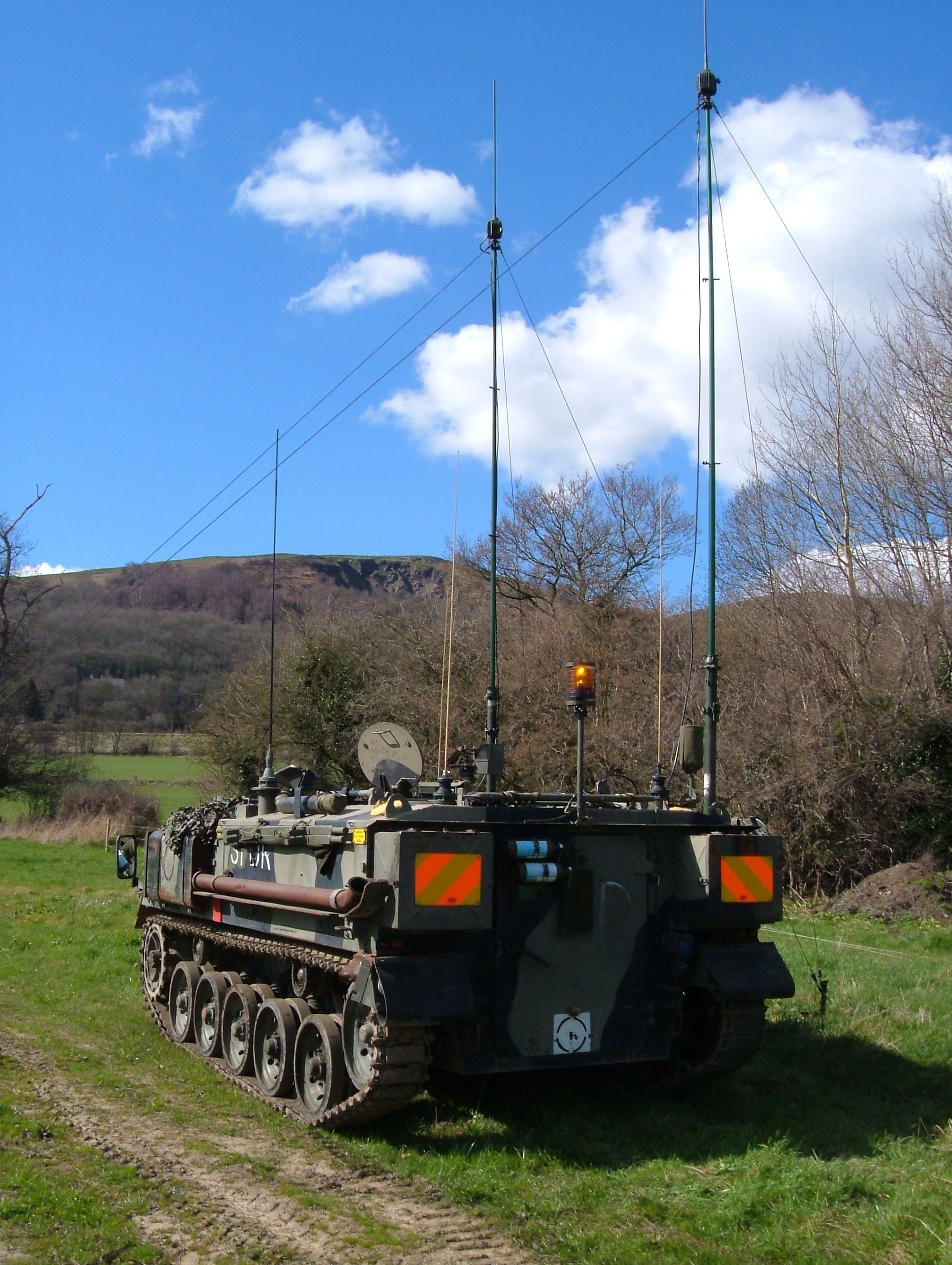 Often seen on command variants the Clarke PU12, 12 metre push up masts, normally used with the EVHF "pineapple" allowing a greater radio range.