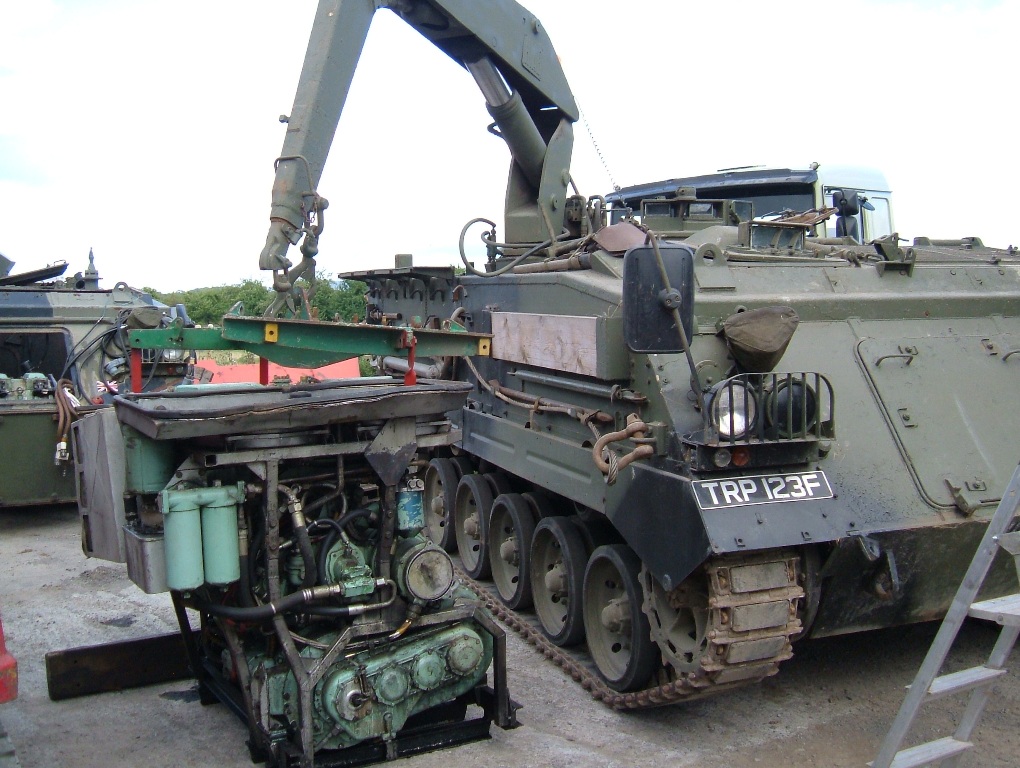 Here is a pic of what I call a late version fv432. It has the square side bin above the exhaust and the factory fitted roof stowage bin. It has even managed to retain a Chieftain MBT half side stowage bin.