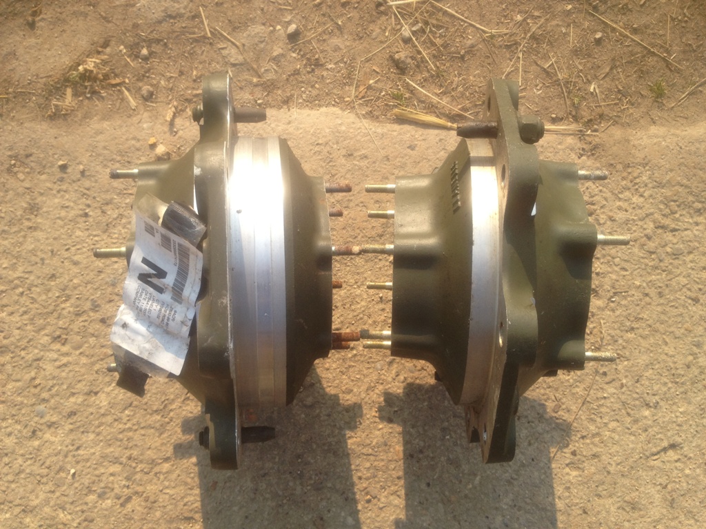 Showing the difference in wheel hubs, the left is a lot thicker spigot for the rear idler position has to cope with extra stresses.