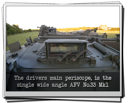 The driver's hatch carries the wide-angle AFV No.33 Mk1 periscope for closed down driving.