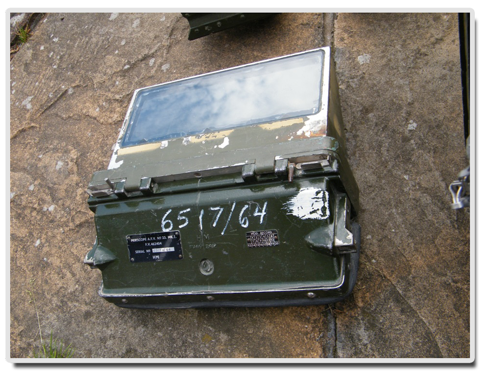 Another tip, if possible avoid storing the periscopes in situ, in the vehicle. Due to the body of the periscope being aluminum and the hatch steel, they can react against each other and cause the periscope to corrode in place. This may result in the persicope being unable to be removed without damaging it. See the last picture a clever way to blank the driver's periscope aperature, as seen on a fv434 that was waiting for disposal.