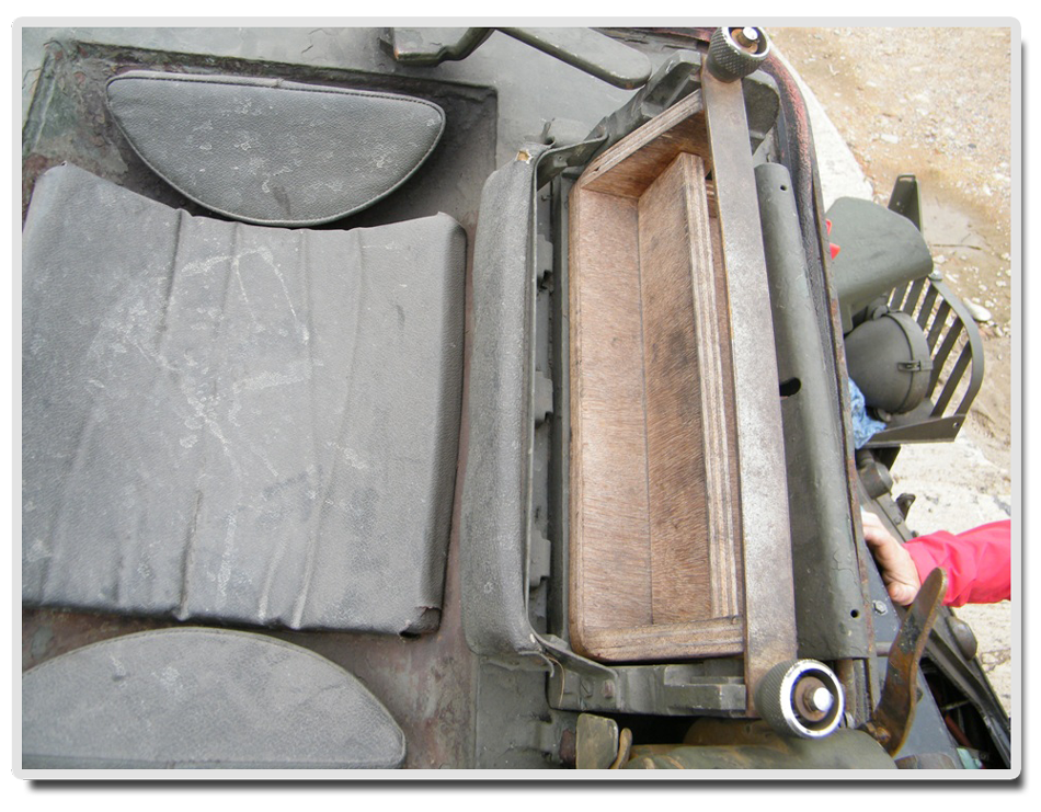 The procedure for removing and replacing the driver's periscope is nice and simple, just slacken the knurled nuts at the bottom of the supporting lugs, swing the lower part of the periscope forward to clear the lugs, and then remove the periscope from the mounting.