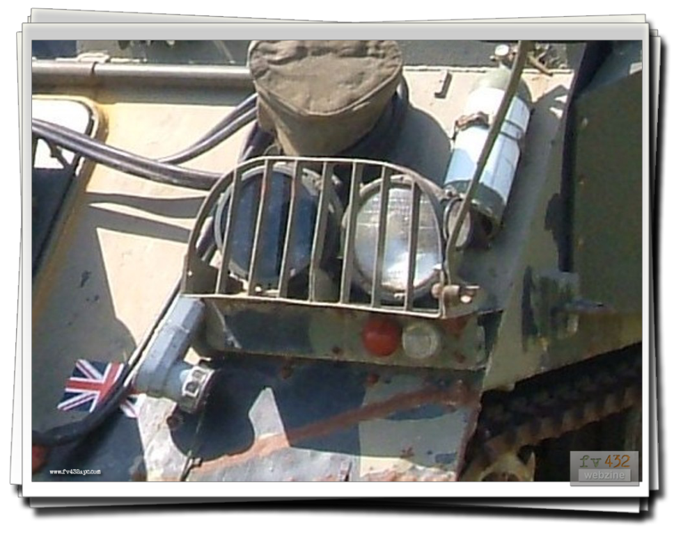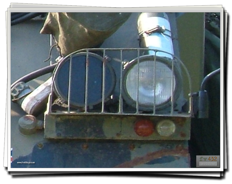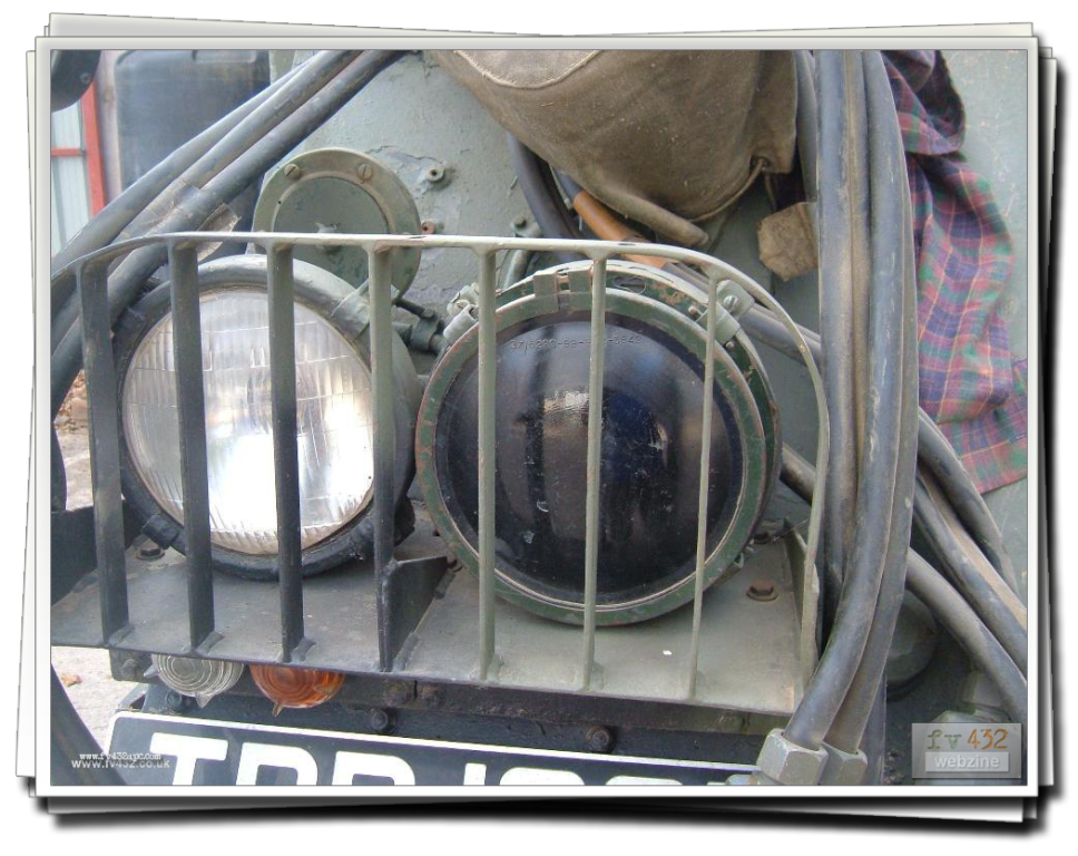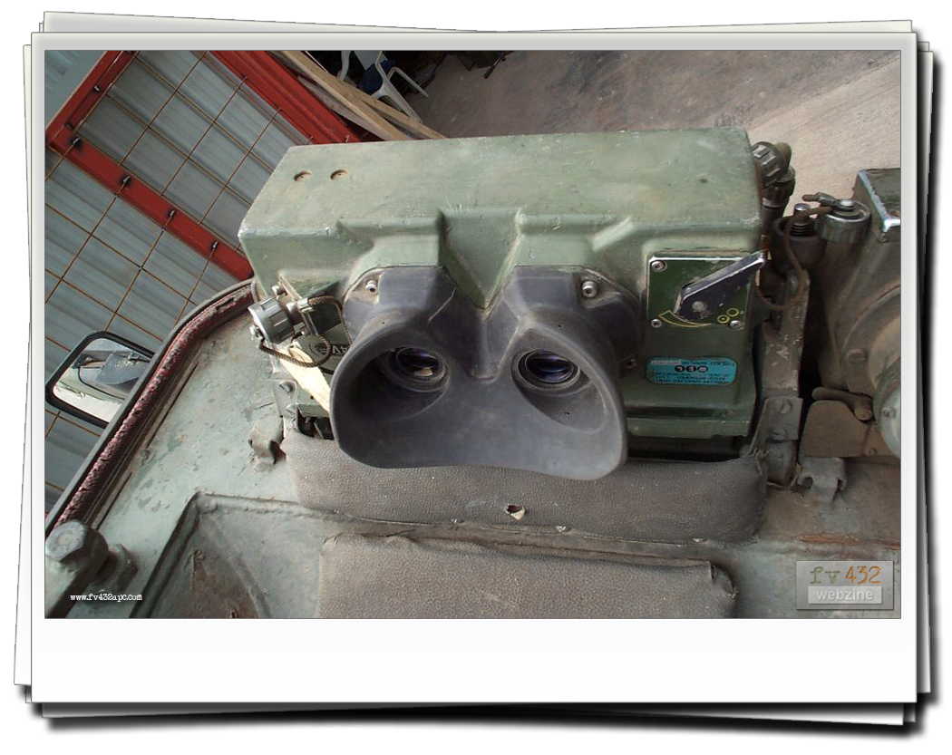 The nightscope is fitted to the drivers hatch in place of the standard drivers periscope, allowing driving at night. A lead is connected to the RF filter up in the left hand corner. Infra-red lenses are fitted to the inner pair of headlights. The headlights are switched on, aswell as the blackout switch. This will turn off all the other lights and as the lenses are fitted, the vehicle appears to the naked eye, not to have any lights on at all! To power the actual scope, as it is powered through the RF filter which in turn gets its feed from the wiper switch, I disconnect the cable that goes to the wipers (at the wiper switch), and basically switch on the wipers. The nightscope has either a lever or knob switch (as there are a couple of types) which darkens or brightens the image seen in the scope.