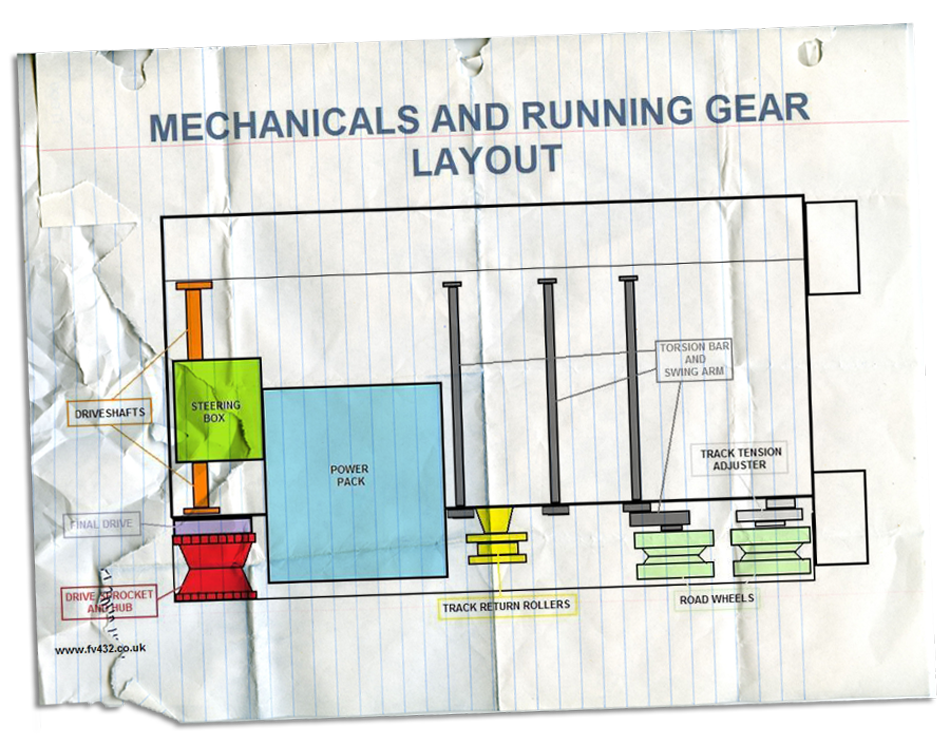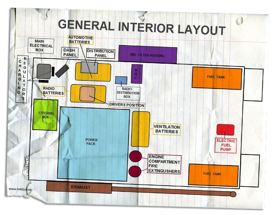 We thought it may be a good idea to include these drawings that we made to give you an idea of the layout of the interior of the average fv432.